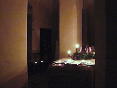 Ranní mše (roráty) v bývalém kostelíku sv. Jana Stětí v pondělí, 2.12.2013