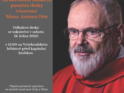 16.01.2025 | V sobotu 18. ledna 2025 bude na Vyšehradském hřbitově u kapitulní hrobky za účasti zástupců Ackermann-Gemeinde, velvyslanectví SRN v ČR, arcibiskupa pražského Mons. Jana Graubnera a představitelů dalších institucí slavnostně odhalena pamětní deska věnovaná Mons. Antonu Otte, staviteli mostů mezi Čechy a Němci.